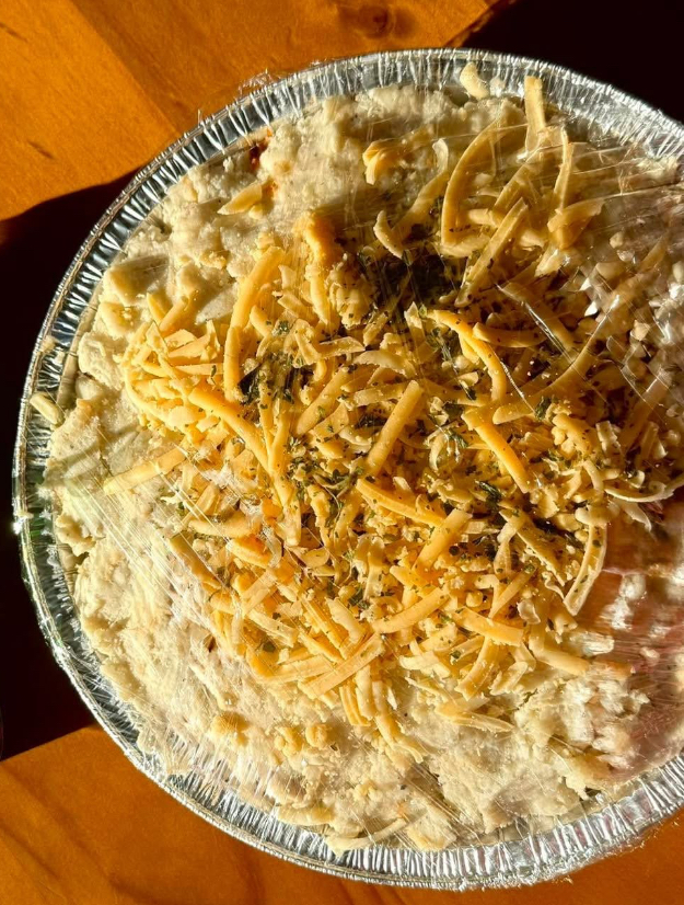 Ingredients: local ground beef, potatoes, local cheddar cheese (milk, salt, enzymes, annatto), onions, organic carrots, organic peas, organic milk, butter, organic tomato paste (Tomato Paste, Water, Citric Acid), organic flour, Better Than Bouillion Organic Beef Base ( Roasted Beef*, Salt, Cane Sugar*, Maltodextrin*, Garlic Powder*, Yeast Extract, Celery Juice Concentrate*, Food Starch*, Onion Powder*, Caramel Color*, Natural Flavor. *Organic), parsley, garlic, organic thyme, organic rosemary, salt, pepper