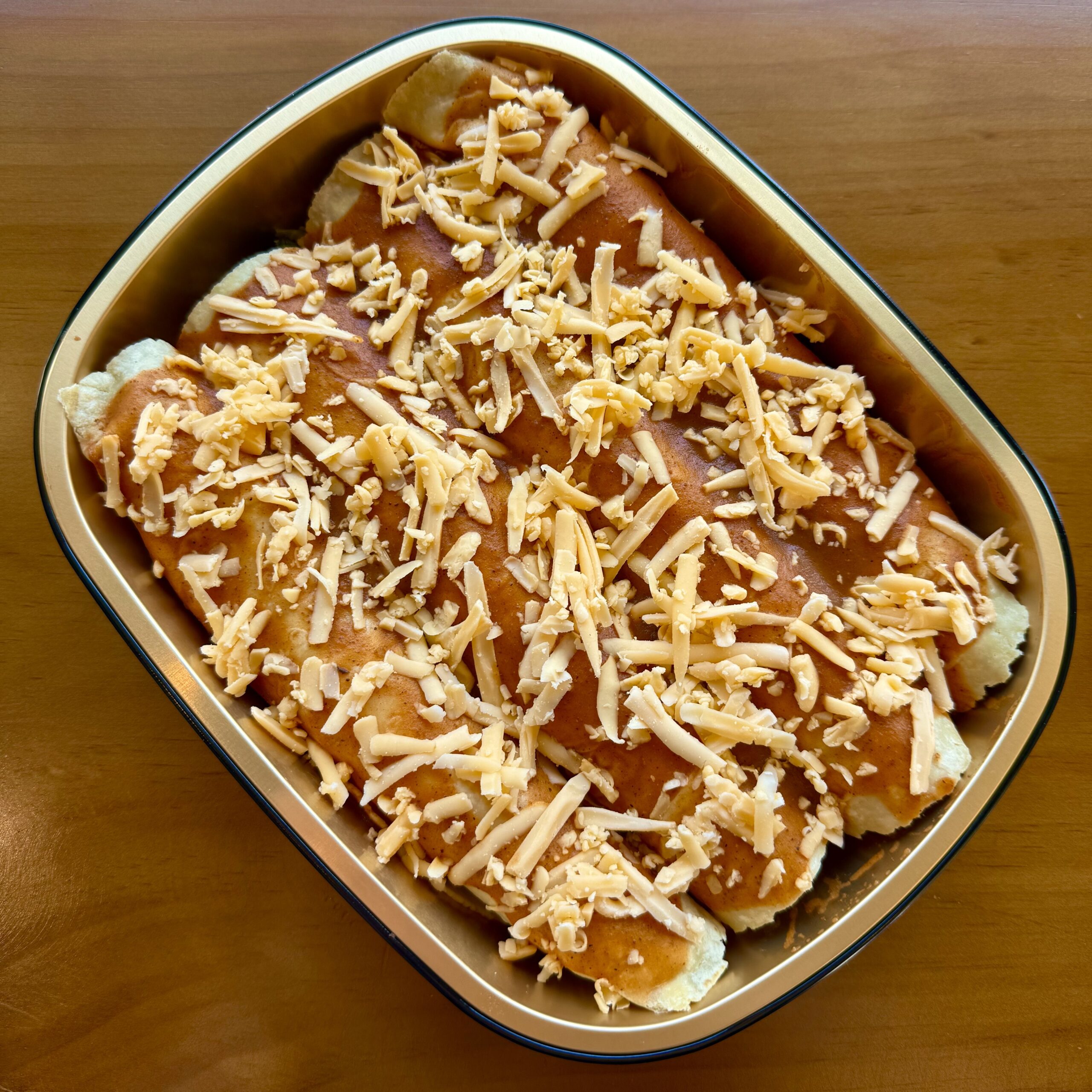 Ingredients: Local ground beef, tortillas ( organic whole wheat and unbleached white flours, water, organic sunflower oil, baking powder, salt, citric acid), Organic Tomato Paste(tomato, Less Than 2% of: Sea Salt, Organic Red Pepper, Citric Acid.), cheddar (pasturized grade A milk, salt, annatto, cheese culture, enzymes), bell pepper, onion, garlic, chili powder (chili pepper, herbs, spices), flour, apple cider vinegar, beef base (Roasted Beef*, Salt, Cane Sugar*, Maltodextrin*, Garlic Powder*, Yeast Extract, Celery Juice Concentrate*, Food Starch* , Onion Powder*, Caramel Color*, Natural Flavor. *Organic), salt, pepper