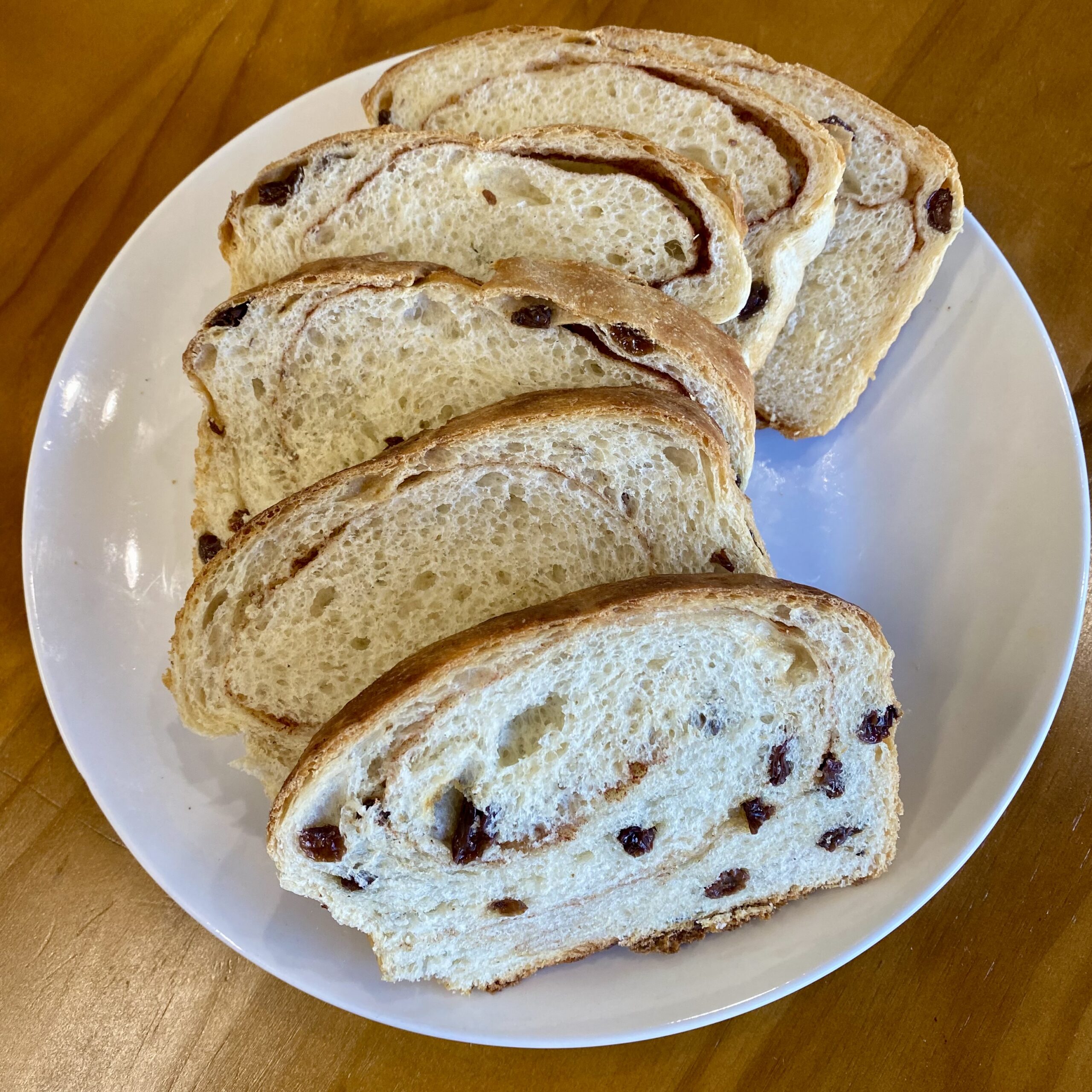 Ingredients: bread flour, water, eggs, butter, raisins, sugar, dry milk, cinnamon, salt, yeast