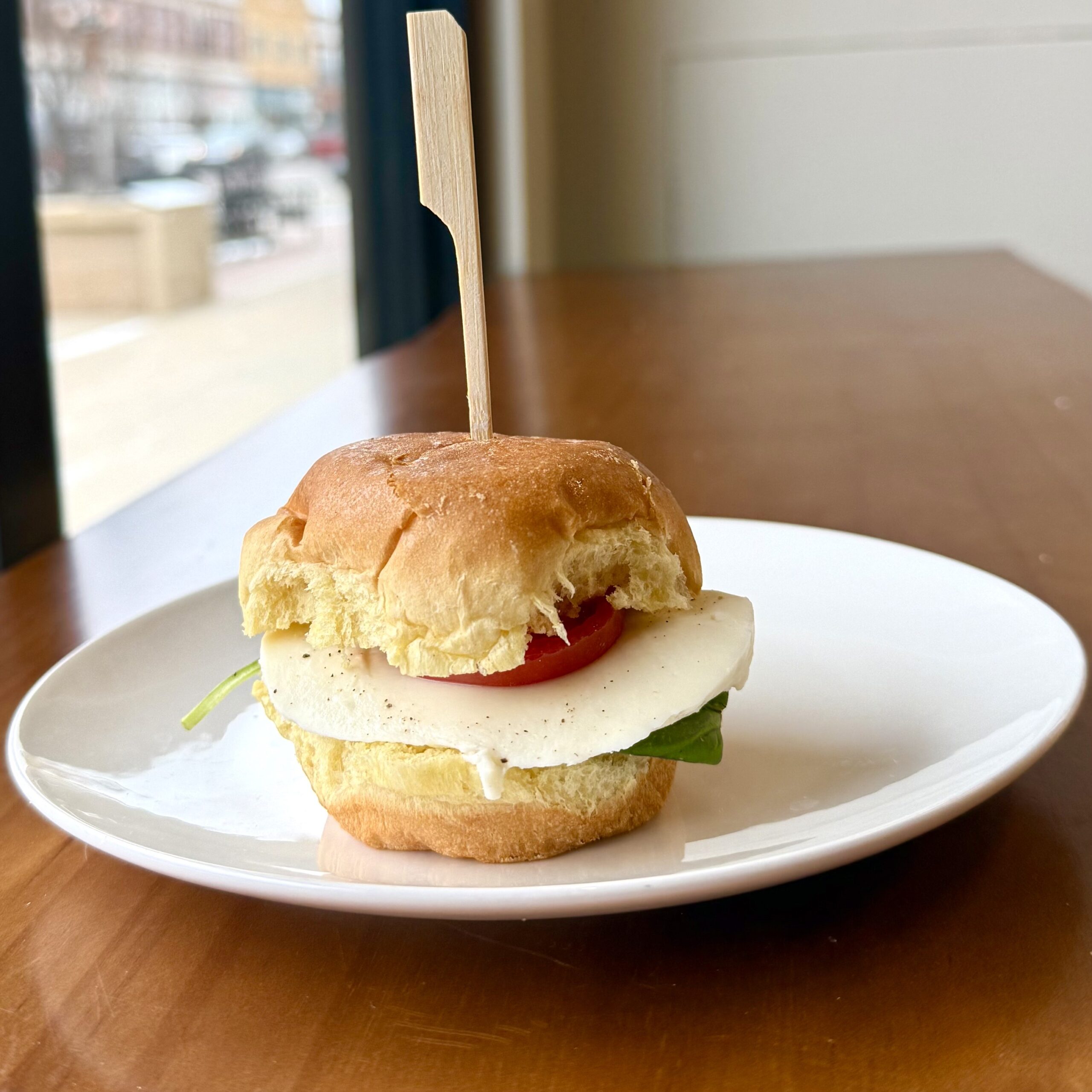 Caprese - Fresh mozzarella, oven-dried tomatoes, greens, & basil pesto